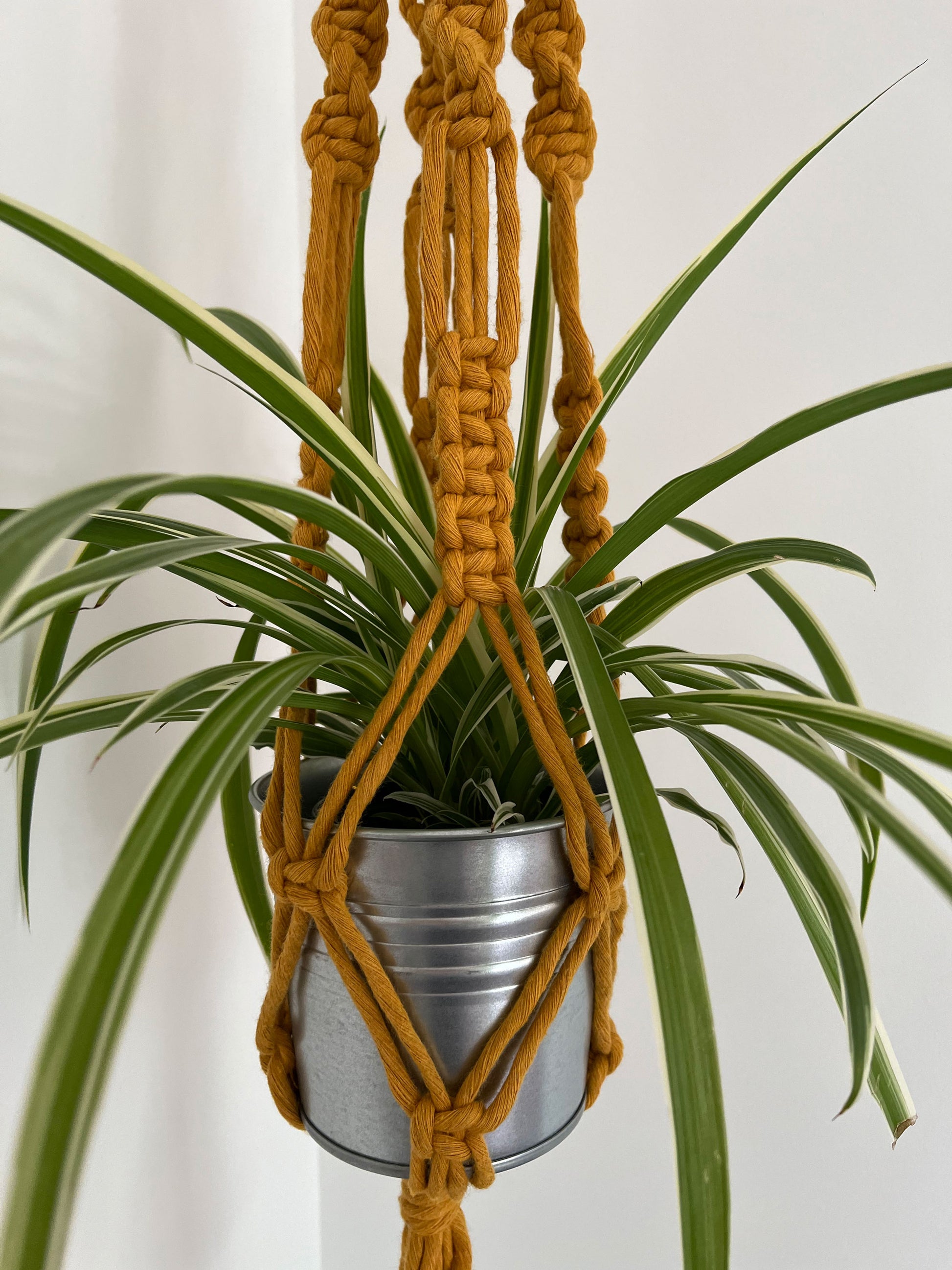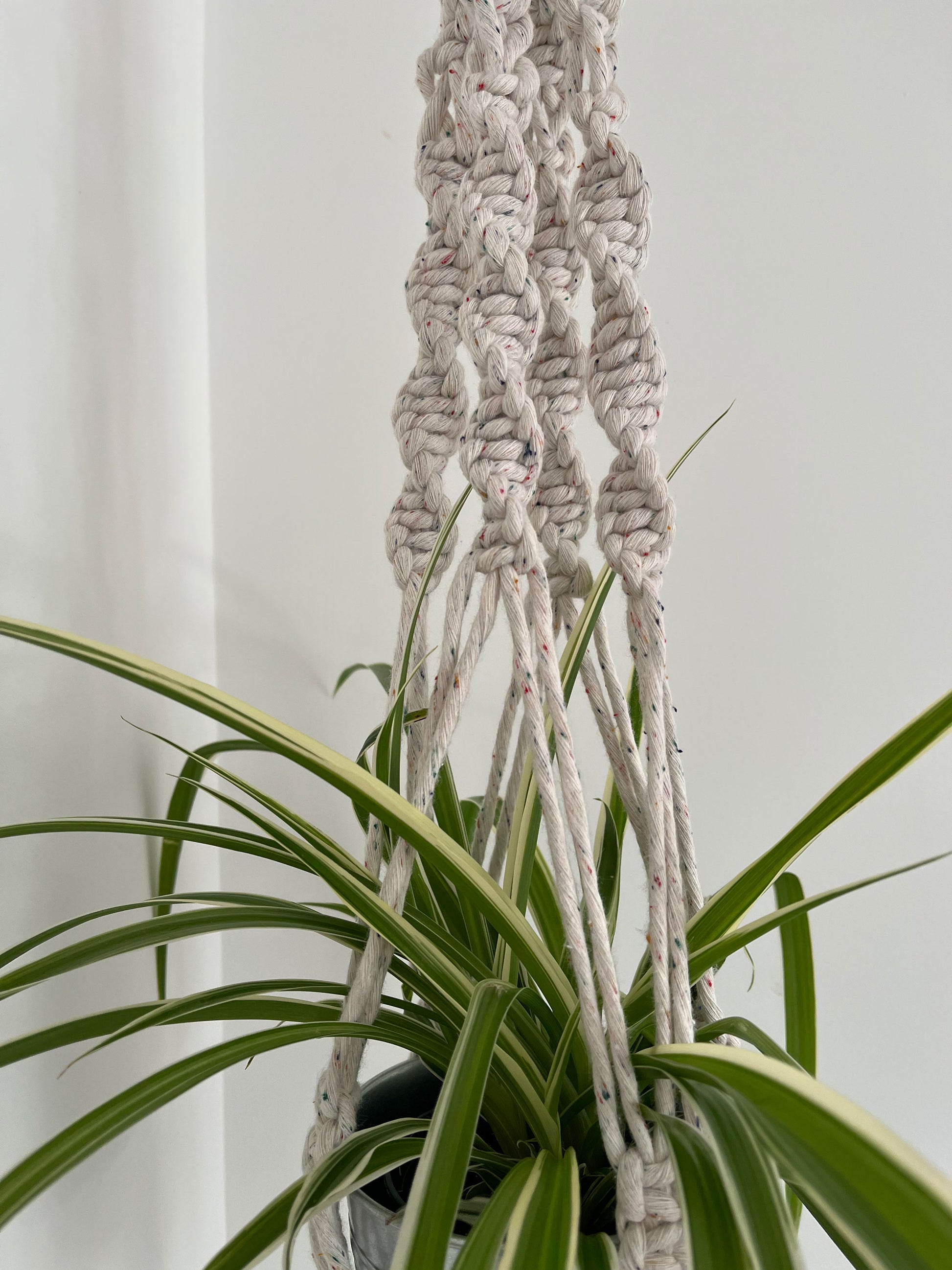If you're looking to showcase your new plant baby or a gift for someone special then look at this beautifully designed and handmade macramé plant hanger. This unique macramé plant hanger is a tactile piece and will add a serene/boho vibe to any interior space.