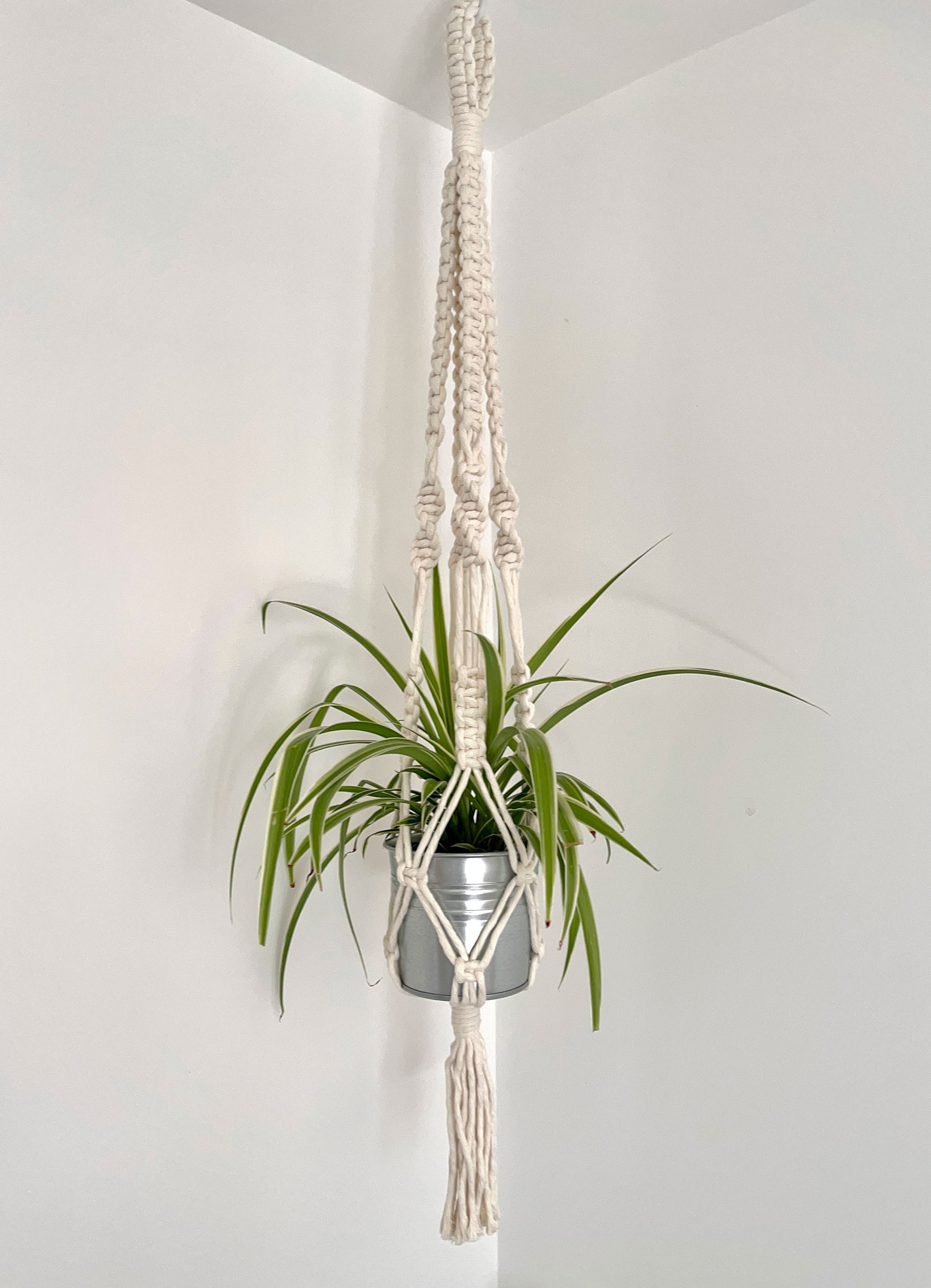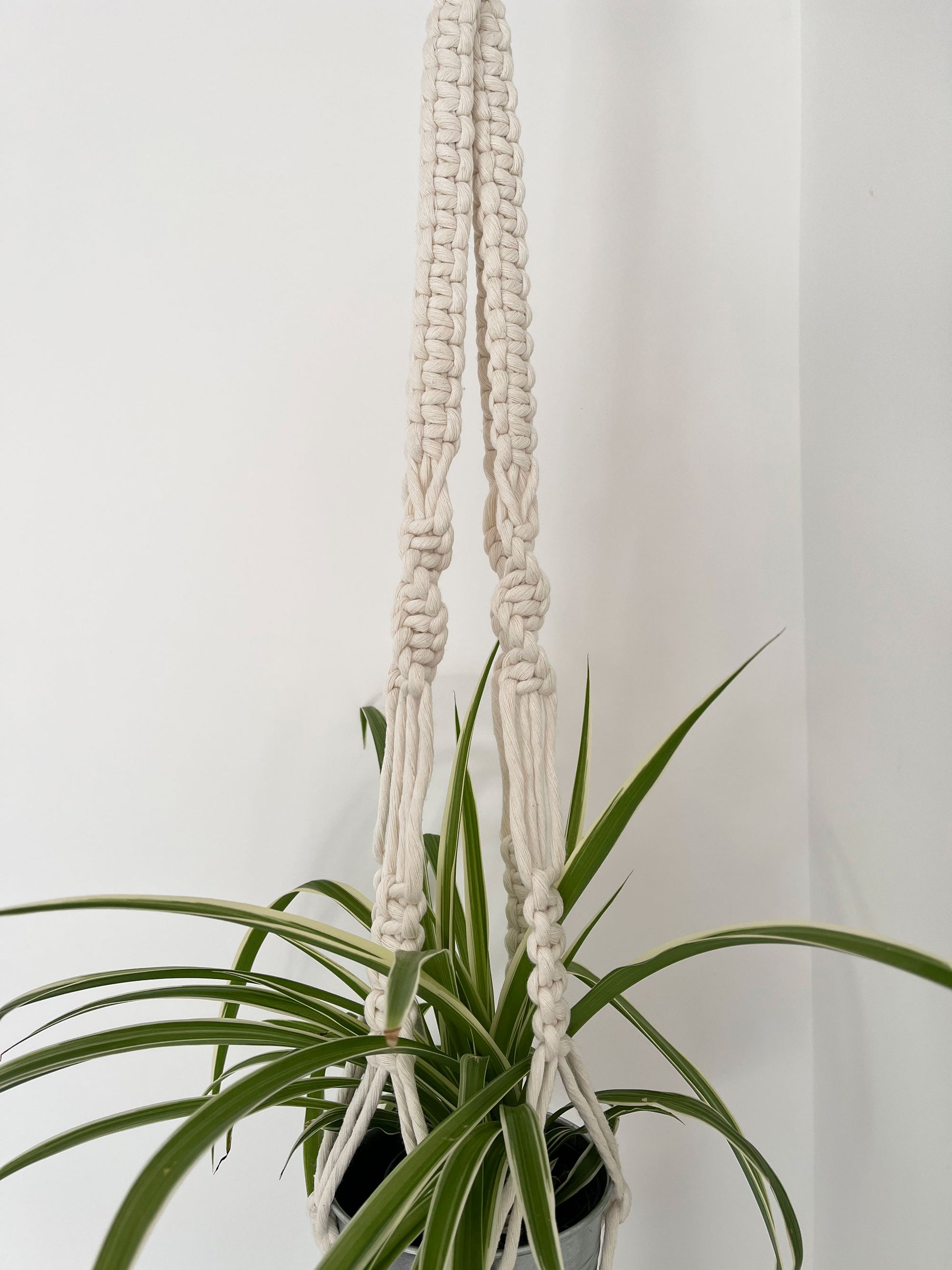 If you're looking to showcase your new plant baby or a gift for someone special then look at this beautifully designed and handmade macrame plant hanger. This unique macrame plant hanger is a tactile piece and will add a serene/boho vibe to any interior space.