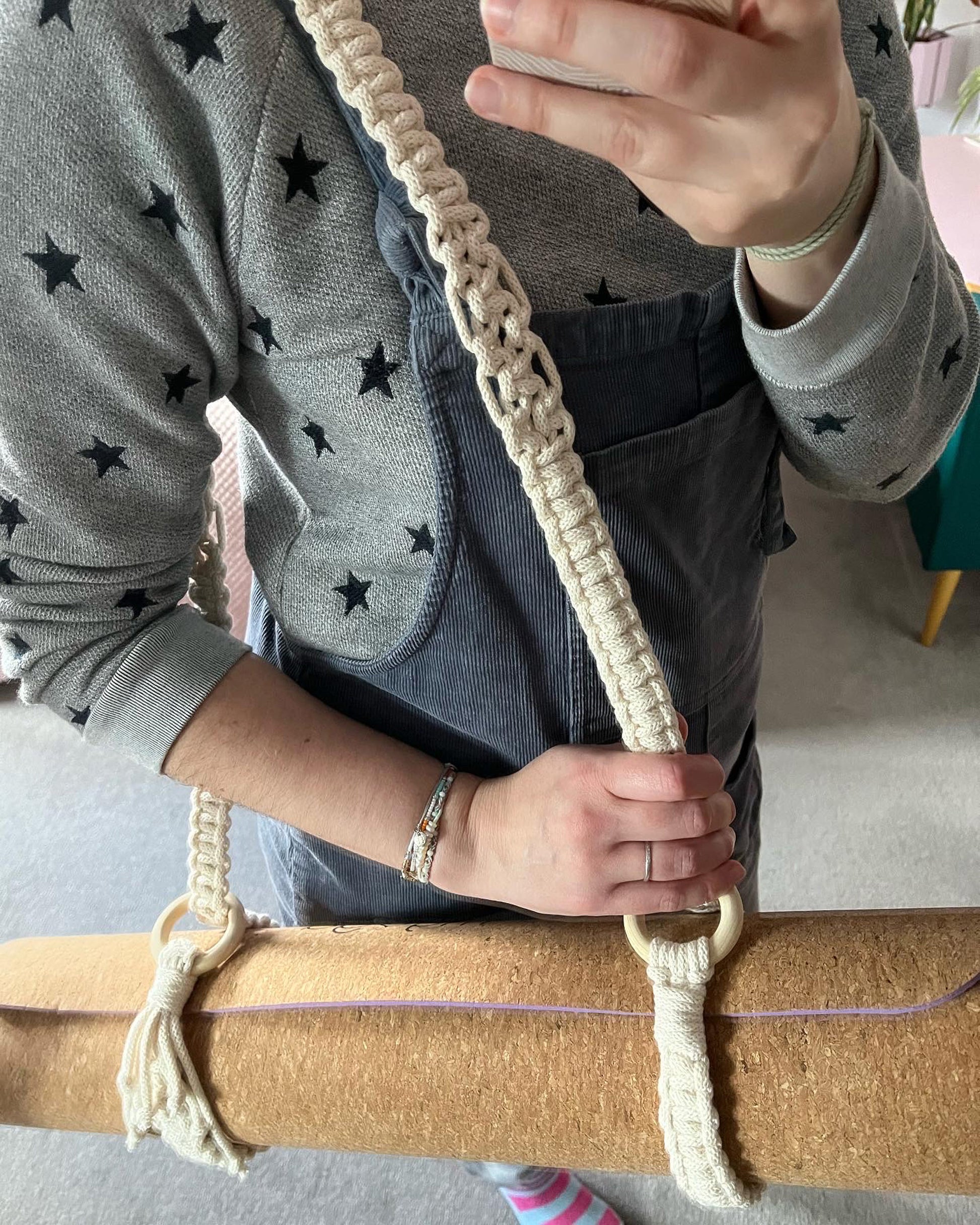 With Pilates a big trend for 2023, you will need the must have accessory. The strap is nice and wide to sit comfortably on your shoulder when carrying your mat to and from your class. Its eco friendly as it is made from 100% recycled cotton with wood hoops.
